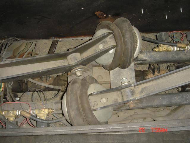 3/4 valves up front contitec bags,1/2 in the rear2 link in the rear w/ panhard bar