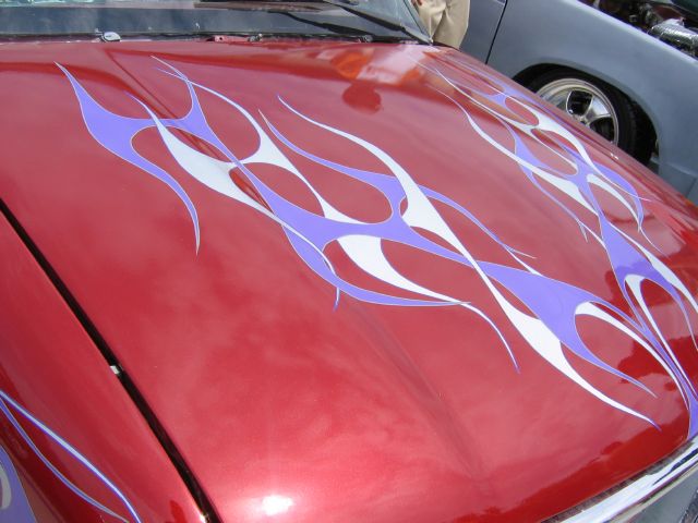 Sprayed dash and doors, and every other piece blaze red, custom headliner and visors, zebra type print.