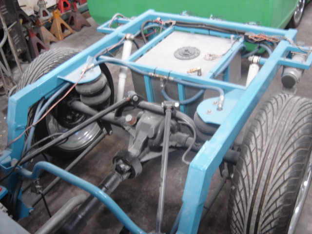 3 in stock floor bd, custom AIR FRAME. firestone bags and viair compressors 1/2 inch line. tubular upper and lower control arms, four link, all suspension parts and frame are powder coated. all matching the paint scheme.