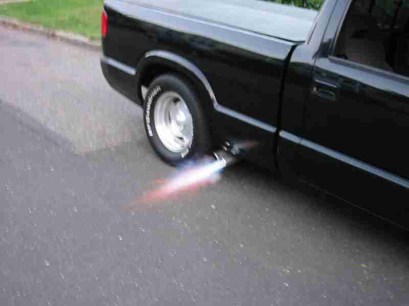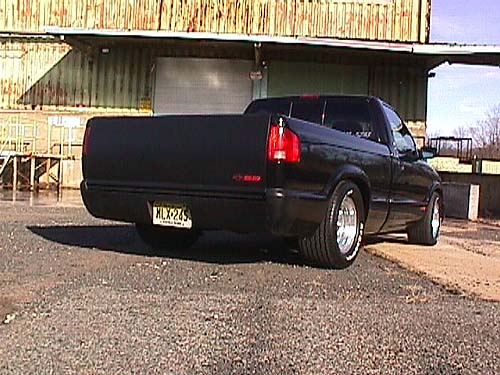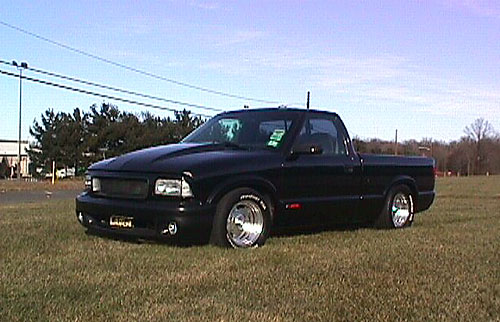 1994 S-10 SS trim with 97 Sonoma grill; 00 Envoy bumper cover; billet grill insert; shaved tailgate; molded Sir Micheals pan; Checkmate FX Soft hinged cover; SS mirrors; PIAA foglights; 20gal fuel cell sunk into bed floor; Optima yellow top in the bed