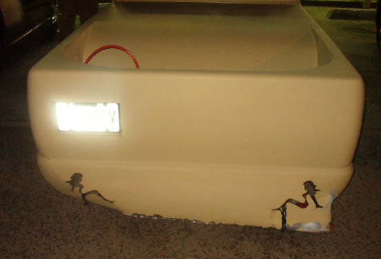 Bodydrop, cali-Combo w/ frenched plate, door handles, third brakelight, taillights, and antenna shaved, custom built LED trucker girl taillights(fabricated by SuperD), chrome motorcycle pop-up gas door, 2" cowl hood, 98 S10 chrome bumper/black lower valence, sheetmetal bed w/ radiused rear corners, full beige primer, all done by Endless Fabrications Inc. in Dallas, Georgia--(678)-758-2563