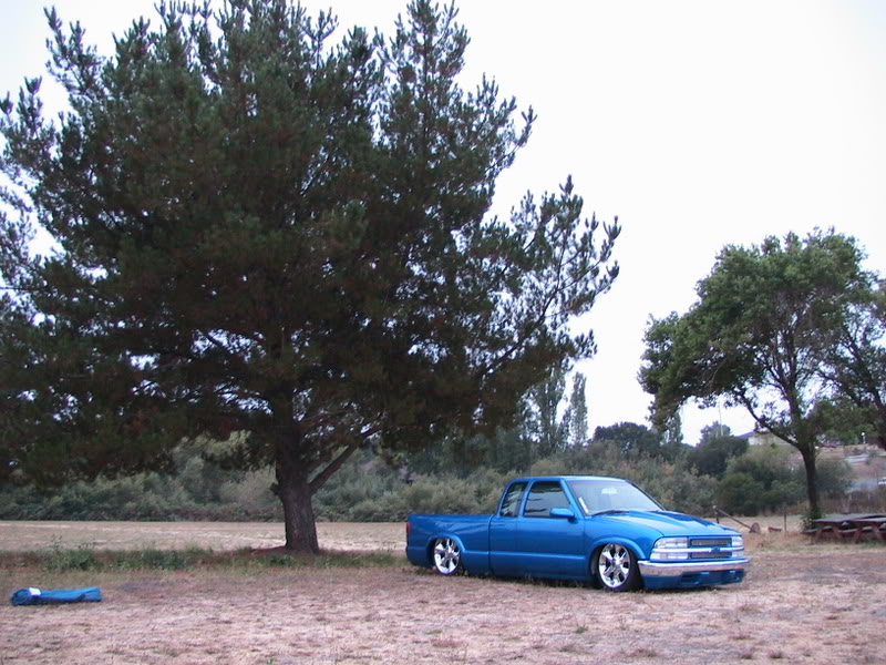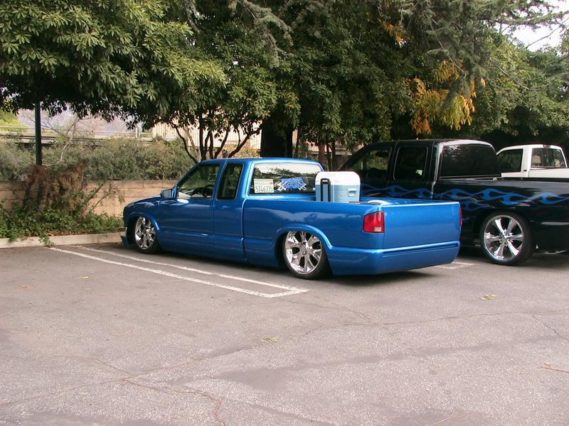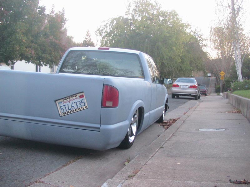 Shaved:---hood squirters, door handles, tailgate handle, molded Sir Michaels roll pan, bedrail corners, rocker seam, 3rd brake light, gas door, antenna. motorcycle gas filler in the bed rail. Raised bed floor 5" updated front bumper and valence. Subaru WRX blue paint, only the firewall was left OEM white. Everything done by me.