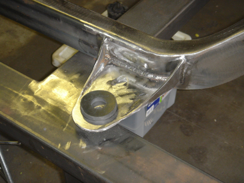 Marking each body mount location with a threaded rod and bolt welded to the table