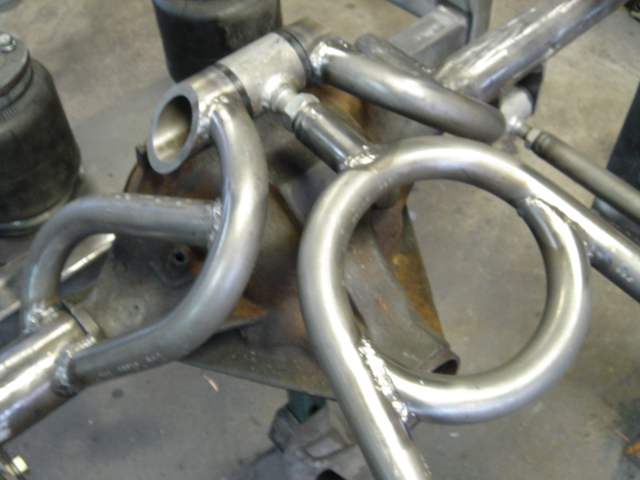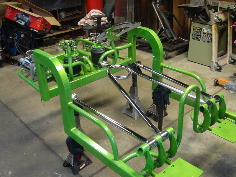 2 pump Hydro setup, 2 dumps. Hydro/air setup at all 4 corners. The air bags will be filled at a set PSI, which will allow for an adjustable spring rate, so i can adjust it to hard or soft depending on what kind of ride i want that day. The rear is in a cantilever form, with the cylinders flipped upside down..... Control arms by barelylegalfabrication.com