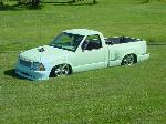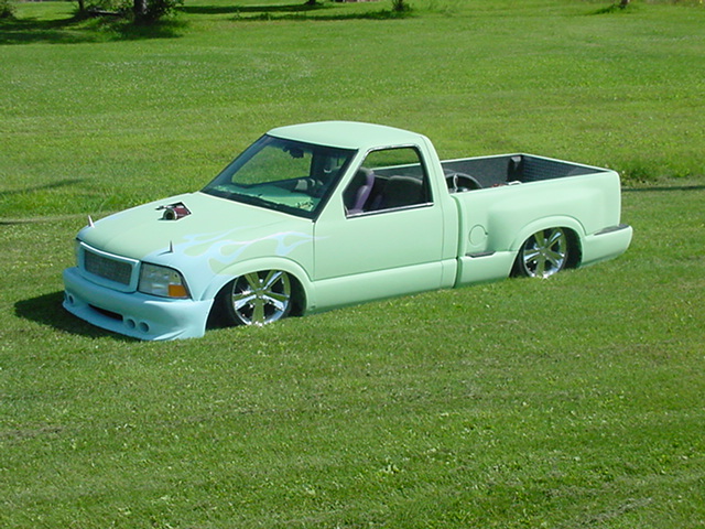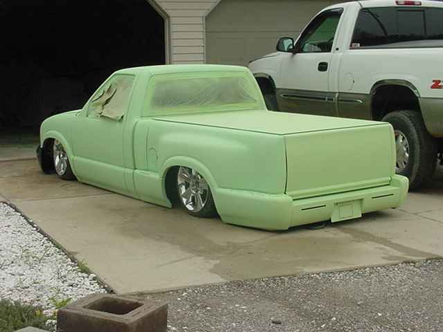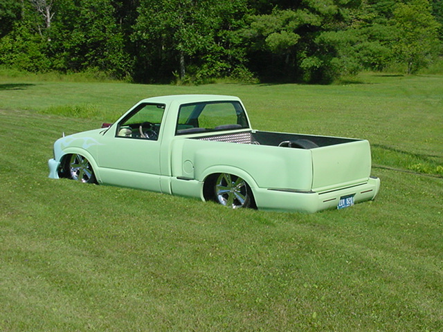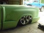 Shaved door handles, shaved mirrors, shaved 3rd brake light, shave taillights, shaved tailgate handle, shaved antenna, god rid of the step shaver kit, and am puttin the stock stepsides back on, i seem to like the look of them better, espically when there squashed on the ground. Finished the inside of the bed, sprayed a Rhino bed liner on it, hooked everything up and plumbed the juice, everything works niceley. Haveing battery problems tho, hopefully will be fixed soon. Waiting on sonoma front end parts, then it will hit the streets.