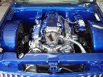 350 TPI, march performance ultradrive pulleys, sandersen ceramic coated headers, custom firewall, shaved core support with a/c and heater lines routed through, smoothe inners made out of multiple trailer fenders, smoothed and painted frame