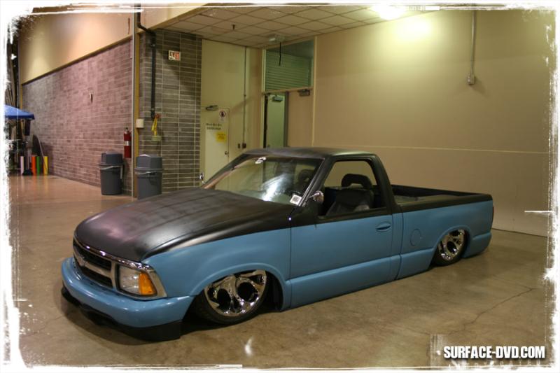 it has a hombre bed blazer tail lights upside down 04 impalla door handles suicide hood the nose is half s-10 half hombre the truck is boby droped 6 in" to the doors and so on