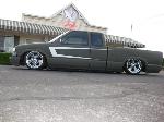 Shaved everything, fullskin cali combo rear w/ '89 smoked caddy tailights, pinstriping, arlen ness motorcycle mirrors, fully sheetmetaled bed