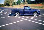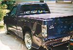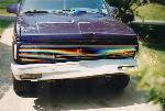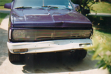 Nissan Royal Blue Pearl, phantom grill, clear lenses, molded fiberglass body kit, shaved emblems, handles, and tailgate. Fiberglass hard cover.