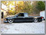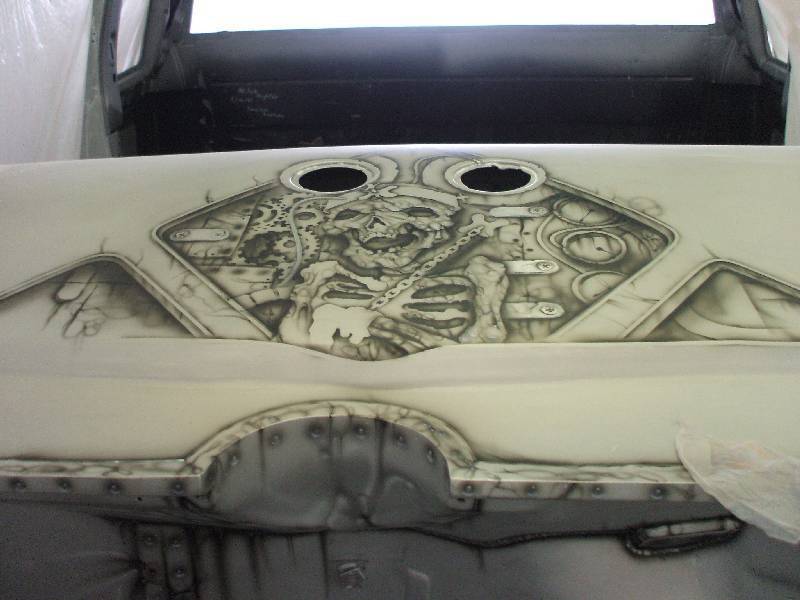 Sheetmetal bumper, s10/noma grille, tilt hood, stretched hood and fenders to windshield, grand prix doorhandles, tilt bed, sheetmetal bedfloor, Grant Kustoms skin, flushmount LEDs, shaved hood squirters, firewall,mirrors, 3rd brakelight, gas door, tailights, cab seams. Andromina silver with airbrush graphics by Jesse Marrow.