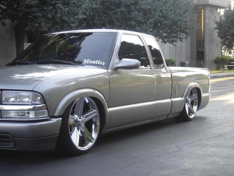 shaved doors, tailgate handle, welded on roll pan, caddy tail lights, clear headlights, billet grille,
