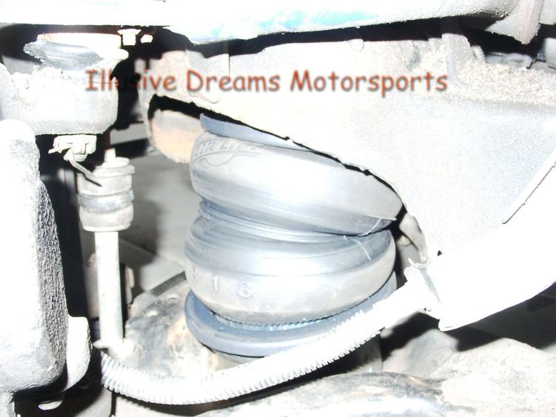 Front - 4 1/2" Parker valves, 1/2" line, suicidedoors.com front cups and shock relocators, Airlift 2b6 bags, 10 gal of air, and (1) 380c for now, KP 6-Link, Airlift 2b7s, 1/2" Fills, 3/8" Dumps