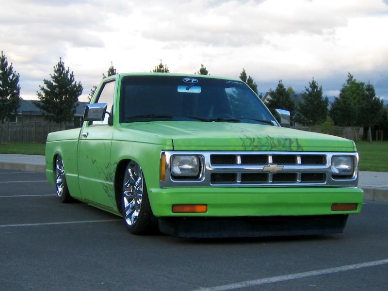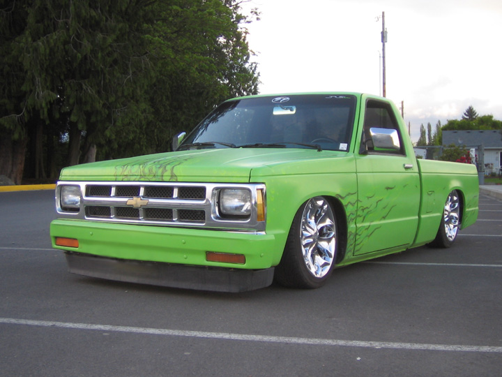 Shaved rear end, tails, skin combo with leds, and antenna for now. The entire truck has been straightened and primed light green with custom airbrushed realistic flames and some hidden skulls, all done by me.