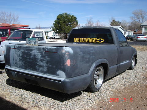 Shaved taillights, tailgate, rollpan, third brakelight, doorhandles, antenna, hood squirters. Led's in the tailgate. its primer gray now.