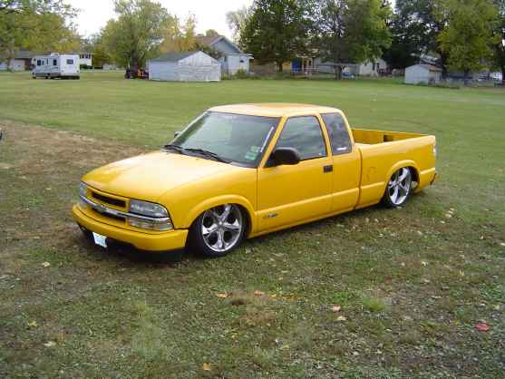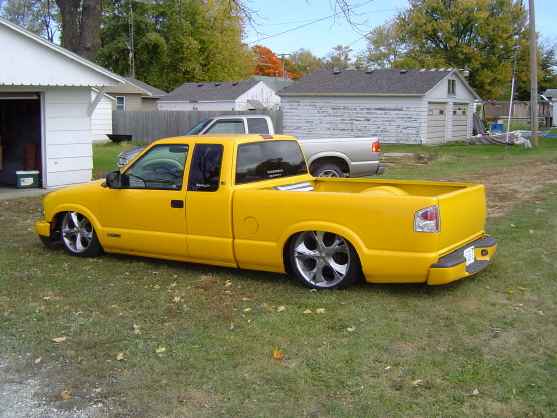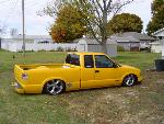 stock s-10 yellow (have my renders done for graphics though)wings west air damn ,shaved tail gate handle ,shaved gas door ,molded steel rollpan ,lexan rear window