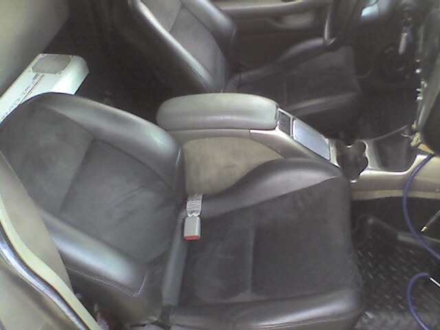 painted black to match truck. civic seats wrapped in suede and vinyl. vintage ac