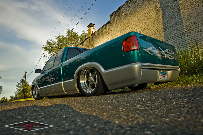 98+ front clip w/trenz billet. Shaved squirters, antenna, tailgate. Color matched handles. Smoothed front valance. Bedliner.