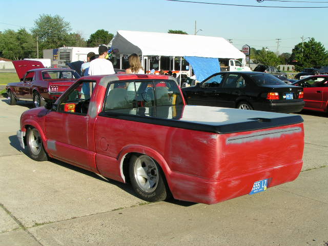 1/2 in. single port 2500s bags up front, 2" beltech drop spindles, 1/2 in. Xtreme GC 250 valves, 12 gallon tank, 200 psi viar compressor, 1/2 in. single port 13" 2600s out back, tri 4-link, 10 in. notch