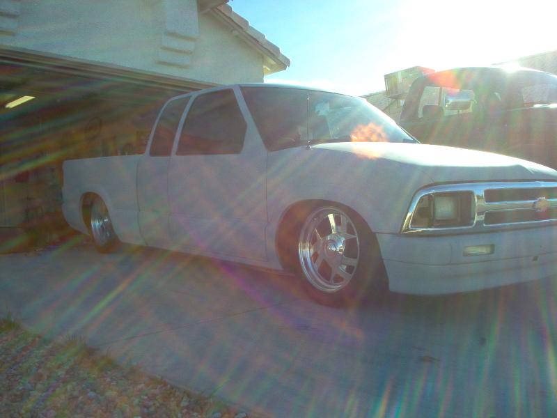 shaved doors, gas door, rain gutters, 3rd brake light, tailgate handle, tailgate welded shut, roll pan, front inner fenders removed, new chrome grill, limo tint, chrome 3 gal. exp. chamber 430 compressor and 20 lb c02 bottle