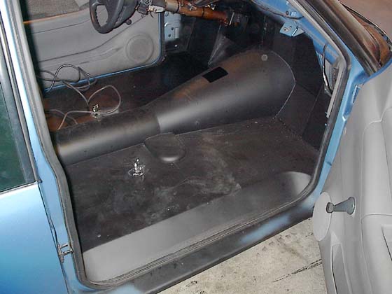 Floor removed and replaced with custom tubing and covered in sheetmetal.