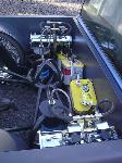 Pro Hopper 2-pump hydro system, 4 Optima Yellow-tops, 10 switch box. Hydro system uses part of the frame to transfer hydro fluid to the cylinders. Front ; Stock suspension arms and steering. 2" dropped spindles. QA1 aluminum shocks. Rear: NDC 4-link suspension, NDC Canti-lever shock mounts, QA1 aluminum shocks. Frame; NDC Firewall-back Jig Fabricated Frame.