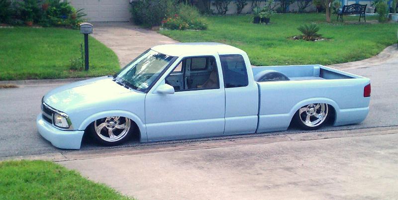 2500's up front 2600's out back. CAN-DO SPECIALTIES reverse 4-link. 2 viair 380's , 7 Gallon Tank. BYC tubular upper and lower control arms, 2" Drop Spindles. 4" Bodydrop.