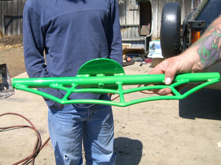 bagged on all 4 corners, reverse 4-link, 3/8" line and smc electric valves with powder coated lime green spider web link bars, 2600lb firestone bags out back and 2500lb firestone bags up front, c-notch, custom shocks, frame notched for clearance for shocks, raised gas tank crossmember, 2 viair 380c chrome compressors, 1 5 gallon tank, kept the sway bar and mounted the shocks on it, custom bridge w/ iron cross and "chop and drop shop" cut into it, 3/8" plate welded to bottom of frame, chrome brake booster with wilwood master cylinder