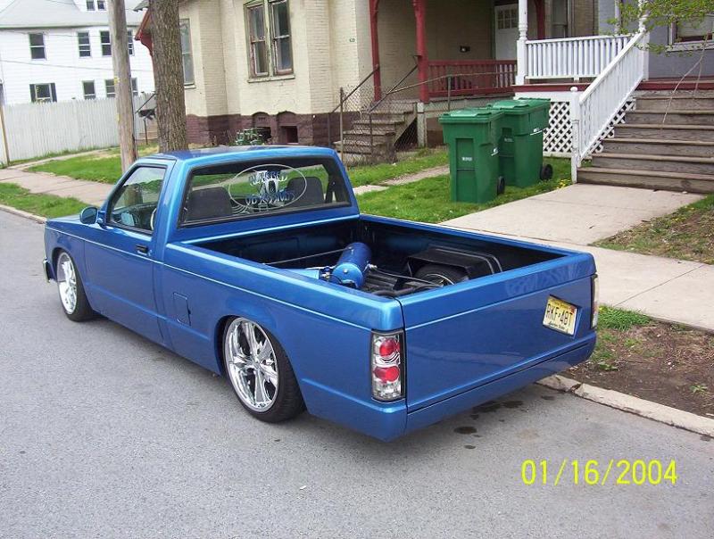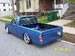 bright blue paintjob i jus got done doin shaved tailgate wit recessed license plate, shaved antenna. rollpan, mirrors, billet grille, headlights
