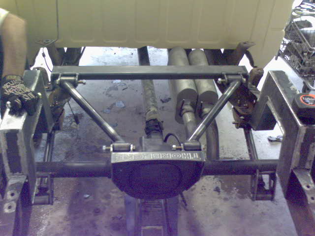Rear: custom built six link w/ Slam Specialties RE 2800 bags, 1994 camaro rear end w/ disc brakes, notched for 24" wheels