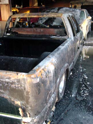 THE STORY: i had put it in the shop to get repainted for like the 3rd time and while it was there the fire department towed a grand prix to the shop my truck was at and left it outside... well, they apparently forgot to take the battery out [even though it HAD caught fire] and it sparked and caught the car back on fire right outside the shop... the wind blew the fire into the shop catching it on fire, and in turn, my truck...