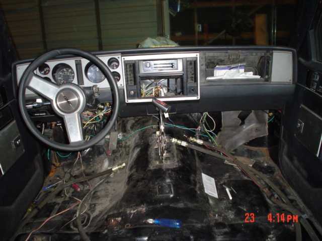 3 3/4" stock floor body drop, primer black everything shaved, doors, tailgate windsheild wipers ect.