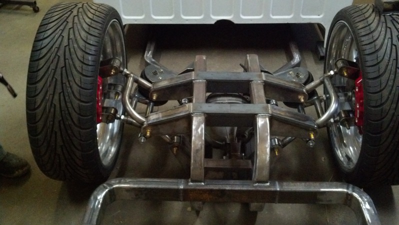 Door back backhalf with mark v111 rear end. Custom frame rails and control arms and spindles. Uni Ball front arms. All work done by Hooies Fab Shop