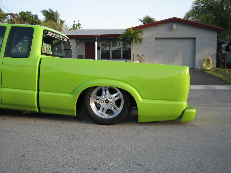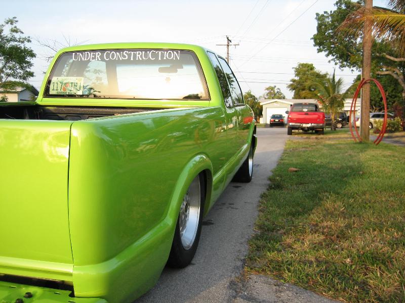 Shaved antenna, brake lights, third brake light, doors, hood pissers, and mirrors. Put on billet motorcycle mirrors. Pained it a very loud lime green