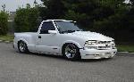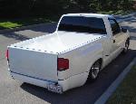 Goodmark style 2 cowl hood, APC clears with fogs, East Coast Customs smooth roll pan step shaver kit, shaved front steps, shaved tailgate handle, one-off custom license plate bracket, Checkmate hard bedcover, Street Scene Turn Signal Mirrors, 5% rear window, 15% sides, painted third brake light lens.