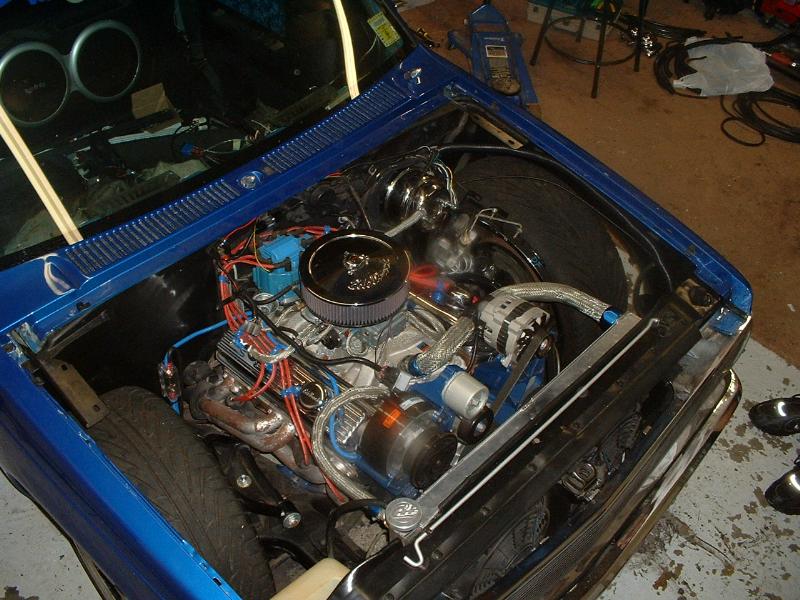 Crate 350 bored 30k over, forged pistons, roller rockers, comp cam, alum intake, Holley 650 cfm carb, headman headers, 350 turbo hydromatic tranny