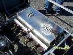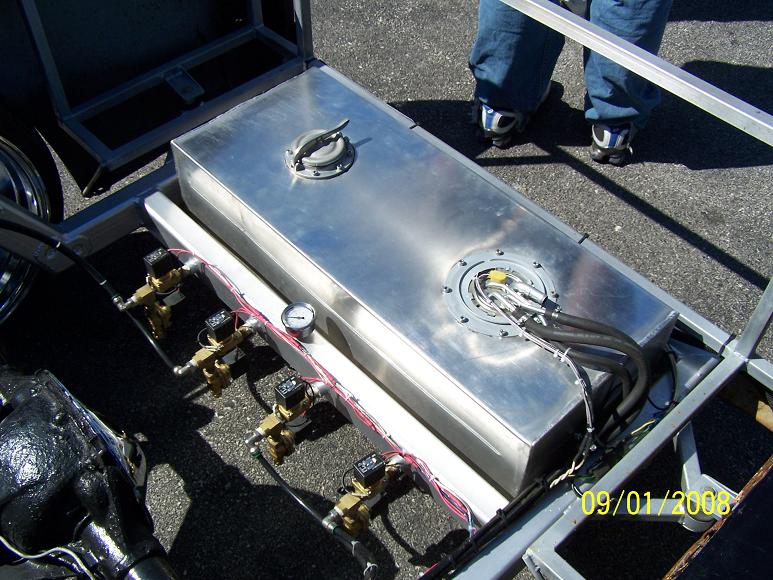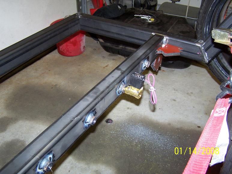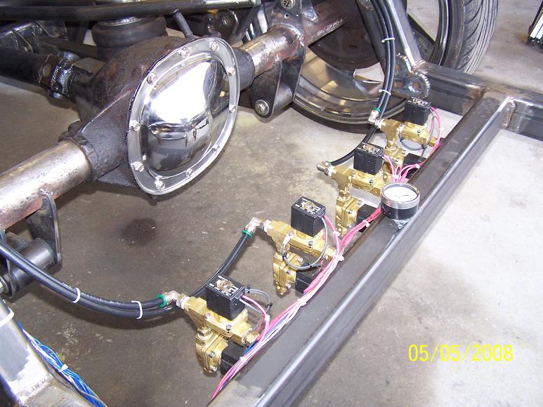 Eight 3/8 SMC electric valves with air gauge and 120 psi in the frame.
