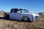 shaved everything body dropped 3 linked front and back shaved tailgate rhino lined bed ppg ratrod satin white paint custon shooting star tint 92 front end