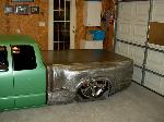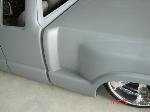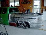 shaved everything, molded bed, molded bed cover, 4" stock floor body drop, 3" chop top, stock hood. F350 Superduty bumper. DB Rods & Miniz 512-809-1854