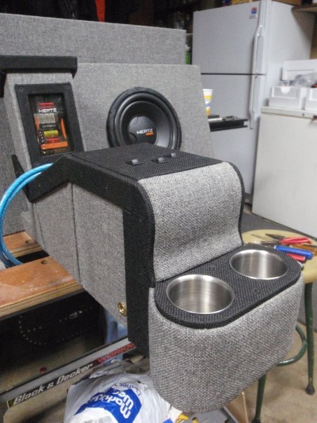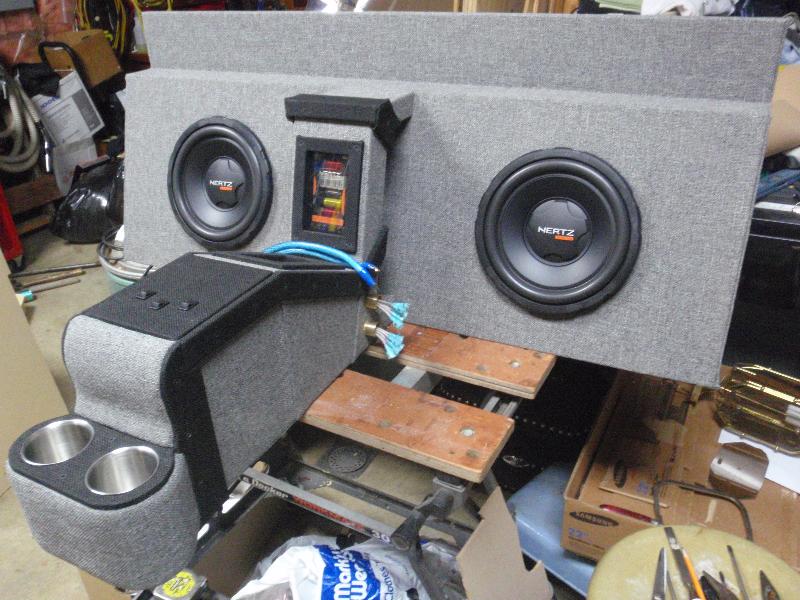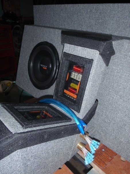 Everything Is Wraped With Black/Grey Tweed... Custom Built Door Panels And Sub Box