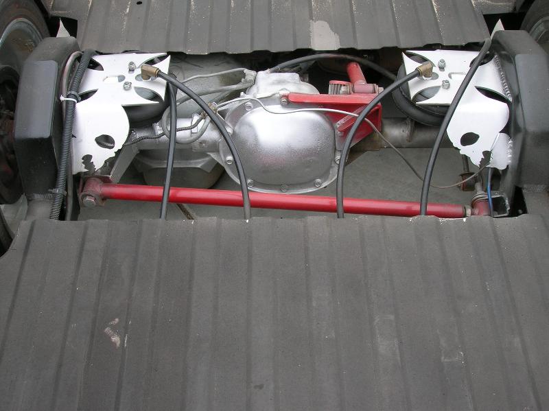 shaved third brake, tail gate, smooth roll pan, relocated lic box, hood squirters, primered black with pinstripping