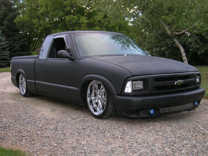Shaved door handles, tailgaite handle, antenna, hood squirters, third brake light, bumper lights, and a welded in roll pan.