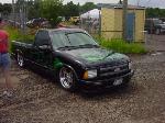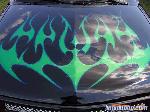 frenched front plate blazer grille speed grilles street scene mirrors flush bed cover shaved gate,handels,squirters,antenna,led third brake light, roll pan,lime time green tribal flames w/ blue slash stripes
