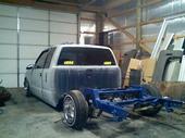 complete air ride with 1/2 in ports c-notched frame painted blue and sliver