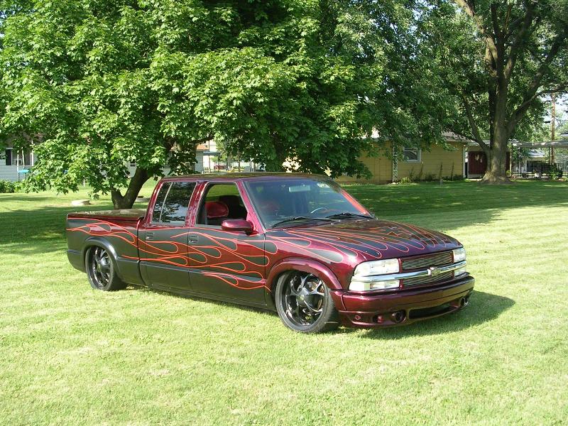 smoothedtailgate and taillights custom painted flat black with kandy red flames flaked out and pin striped in orange