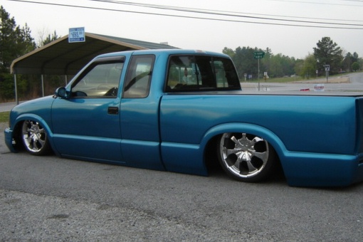 aqua blue/teal ppg paint,shaved annt.,tailgate handle,bumper lights,gas door,m3 mirrors 3" bd sonoma hood