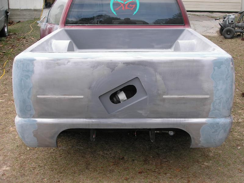 Shaved antenna. gas door behind tag. fully 18 gauge sheet metal bed floor. Suicided Doors. chrome motorcycle mirrors, and billet ball milled wipers.