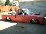 pink primer, shaved, bodydropped 4 1/2, suicide doors, tubbed with matching bed lines notch cover, crooked front plate in bumper