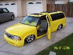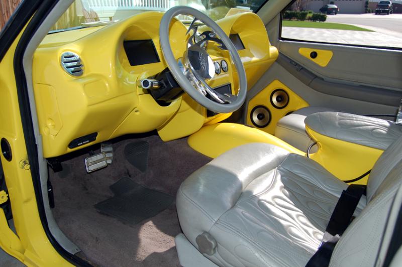 Lemon ice Yellow, Fully Shaved, Envoy front.. 35 ford tails. Suicided Doors, Leer campershell,power rap top on camper, billet grille,ram air hood, pin striping from jay werner