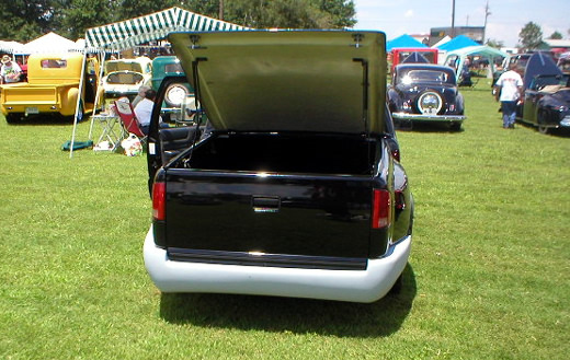 Suicide Door Kit, Shave Everything, Custom Tailgate Skin, GoodMark Gen3 SS Hood, Stepshaver Kit, Envoy front end swap, Stereo Install, Chromed motor pieces Installed:(AC Bracket,Alternator, Alternator Bracket, Core Support Bracing, Front flip hood hinge kit, Billet Pullies, Battery Cover.) Box in interior of Bed. Complete New paint Scheme.