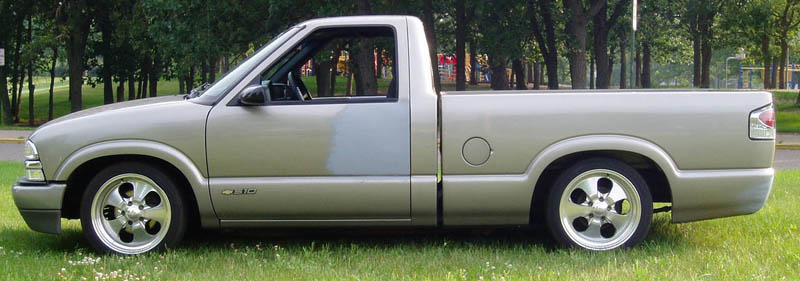 Shaved doors, tailgate, welded in roll pan, frenched plate, clear corners.